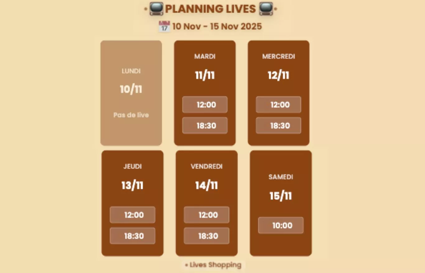 Chez Mona Dress, nous avons des lives en moyenne de 3 à 4 fois par semaines et même le week-end.