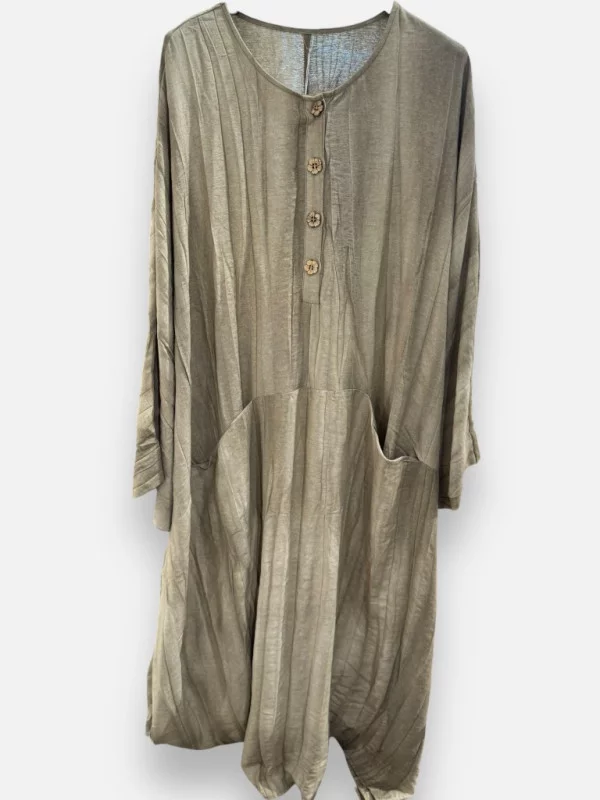 La Robe Kalia est une invitation au voyage. Conçue dans un mélange noble de coton et de lin, elle offre une respirabilité et une légèreté incomparables, idéales pour les journées chaudes. Sa coupe fluide et généreuse convient à toutes les morphologies, allant sans problème jusqu'à la taille 50. On adore son coloris beige-khaki naturel qui s'harmonise avec tous les teints. Ses deux grandes poches latérales apportent une touche de décontraction et de praticité. Le décolleté en V peut être modulé pour un look plus ou moins suggestif. Portez-la telle quelle pour un style bohème authentique, ou ceinturée pour marquer votre silhouette. C'est une robe 'feel-good', celle que l'on enfile pour se sentir instantanément libre et belle. Une pièce maîtresse de la collection California Dream de Mona-Dress.