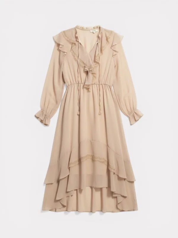La robe Jabot est la pièce de caractère indispensable pour celles qui recherchent un look à la fois chic et original. Son travail de volants sur le devant, le fameux jabot, apporte une structure sophistiquée et un volume très 'couture' qui fait sensation à chaque sortie. Cette robe a été testée et approuvée par notre équipe pour les tailles allant du 36 au 42. Attention mes jolies, pour un confort optimal au niveau de la poitrine, nous la conseillons jusqu'à un bonnet 95D maximum afin de préserver l'esthétique du jabot. C'est la robe idéale pour un événement, un cocktail ou simplement pour se sentir belle et remarquée. Associez-la à une paire d'escarpins pour affiner la silhouette ou des sandales dorées pour un rappel de lumière. Une pièce forte à prix canon !