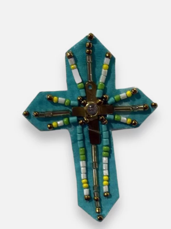 Apportez une touche de caractère à vos vestes et accessoires avec cette magnifique broche Croix Turquoise. Son design ciselé rappelle les bijoux amérindiens et l'esprit 'California Dream' que nous aimons tant. Les cabochons turquoises captent la lumière et contrastent superbement avec le métal argenté vieilli. Elle est idéale pour fermer un gilet un peu large ou pour décorer votre sac en toile. Les copines, c'est vraiment l'accessoire à posséder pour signer votre look. On l'imagine parfaitement sur une robe longue ou pour retenir un foulard tie-and-dye. Une pièce forte à prix doux qui ne passera pas inaperçue lors de vos sorties !