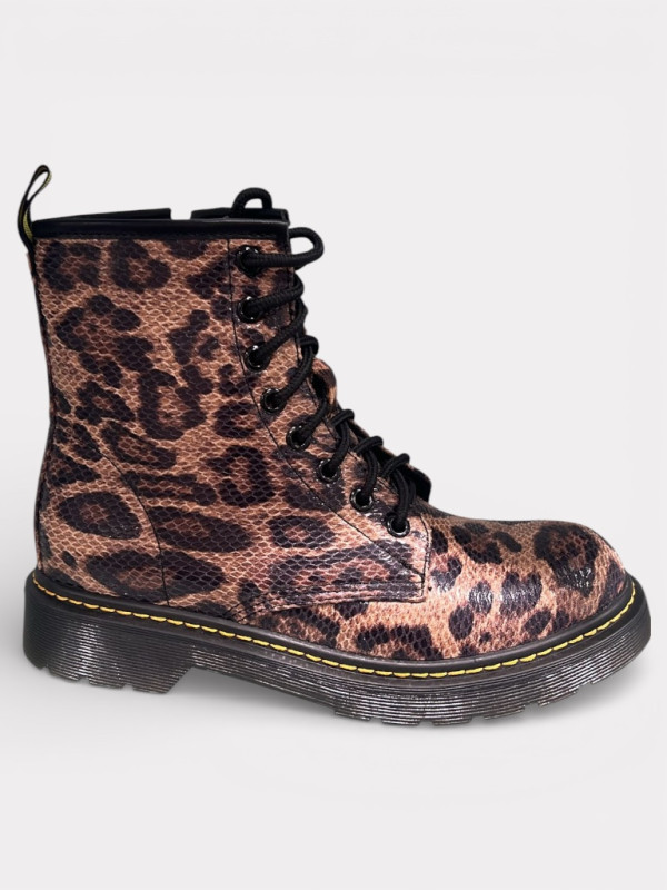 Les boots style 'Doc' à l'imprimé léopard scintillant.