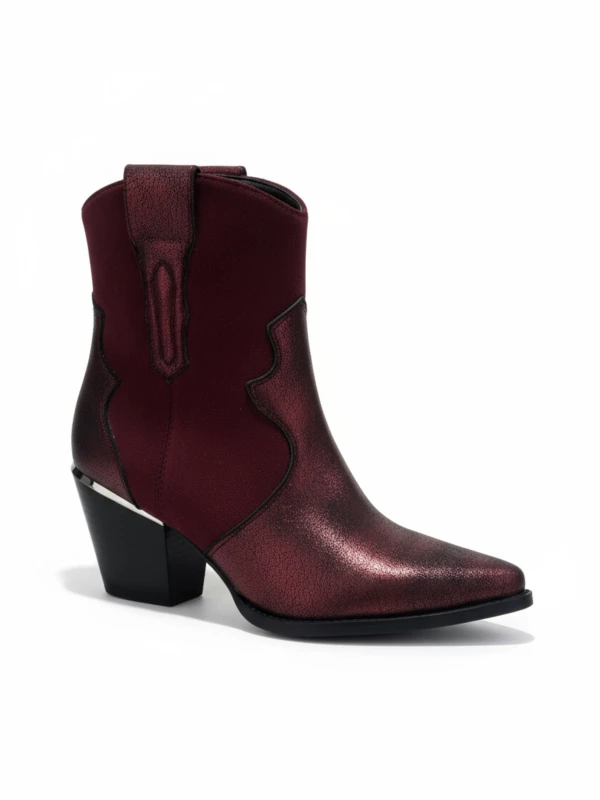 Prête à devenir la reine du style ? Les bottes Reine sont la pièce d'exception qui manquait à votre dressing ! Inspirées des santiags, elles se réinventent avec une audace folle grâce à leur conception bimatière. L'alliance du simili-daim doux et du simili-cuir martelé avec un fini métallisé bordeaux crée un contraste saisissant et terriblement tendance. Vous vous sentirez puissante et stylée, prête à conquérir la ville. Montées sur un talon confortable de 5 cm, elles sont parfaites pour trotter toute la journée sans sacrifier ni le style, ni le confort. Elles sont bien plus qu'une simple paire de bottes, c'est une véritable déclaration de mode qui ne laissera personne indifférent.