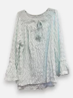 Voyagez vers des contrées lointaines avec la tunique Aladin ! Cette pièce est un véritable enchantement grâce à sa matière gaufrée ultra extensible contenant 15% de lycra pour un confort absolu. On adore ses manches originales ornées d'un délicat imprimé vichy qui apporte une touche rétro-chic. Son encolure montée sur élastique vous permet de la porter de deux façons : normalement sur les épaules ou de manière plus sensuelle en dévoilant vos épaules. Disponible en vert d'eau, beige naturel et rose tendre, elle s'adapte à toutes les carnations. Sa coupe fluide et vaporeuse convient parfaitement jusqu'à la taille 46. C'est la tunique bohème par excellence, idéale pour une balade au marché ou une soirée d'été. Associez-la à un short en jean ou un pantalon blanc pour un look frais et féminin. Une pièce pleine de détails et de poésie qui va enchanter votre été !