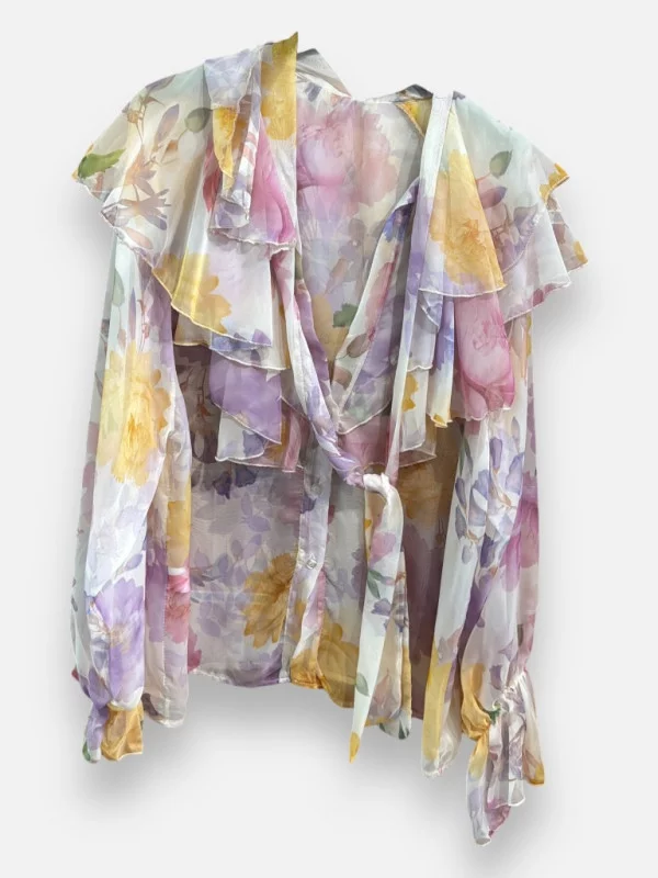 La chemise Claudia est une pièce d'exception que nous n'avons qu'en quantité limitée. Sa matière vaporeuse, presque transparente, procure une sensation de soie sur la peau. Entièrement boutonnée, elle présente de magnifiques broderies sur les manches et le buste, ce qui lui donne un cachet fou. Portez-la sur une jolie brassière de soie pour un effet glamour et sophistiqué. Elle va jusqu'à la taille 46 et son tombé est tout simplement divin. C'est la chemise que vous sortirez pour vos plus beaux événements ou pour upgrader un simple jean. À 69 euros, elle apporte une touche de luxe indispensable à votre dressing printanier.
