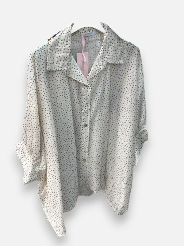 La chemise Pois est un enchantement de douceur. Son tissu en voile de viscose et Tencel est d'une finesse incroyable, offrant une sensation de légèreté absolue sur la peau. Le motif à pois, dans des tons chocolat et camel sur un fond beige, apporte une touche de classicisme revisitée avec beaucoup de modernité. Cette chemise est particulièrement inclusive car sa coupe évasée et ses manches amples permettent d'habiller jusqu'à la taille 52 avec une élégance rare. Elle bouge au gré de vos pas, créant un effet aérien magnifique. C'est la pièce idéale pour les journées chaudes où l'on souhaite rester couverte tout en laissant respirer son corps. Associez-la à un pantalon en gaze de coton ou un jean blanc pour un look frais et distingué. Sa fluidité en fait une alliée précieuse pour cacher les petites rondeurs tout en restant ultra-féminine. C'est une pépite incontournable de notre collection, validée par toute l'équipe Mona-Dress.