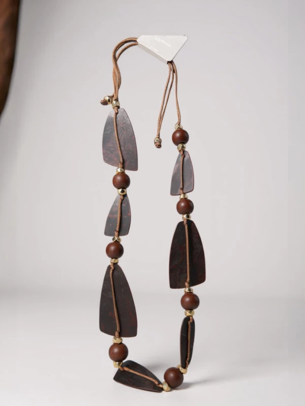 Description : Un sautoir réglable aux tons chauds et naturels, parfait pour habiller un pull ou une tunique.