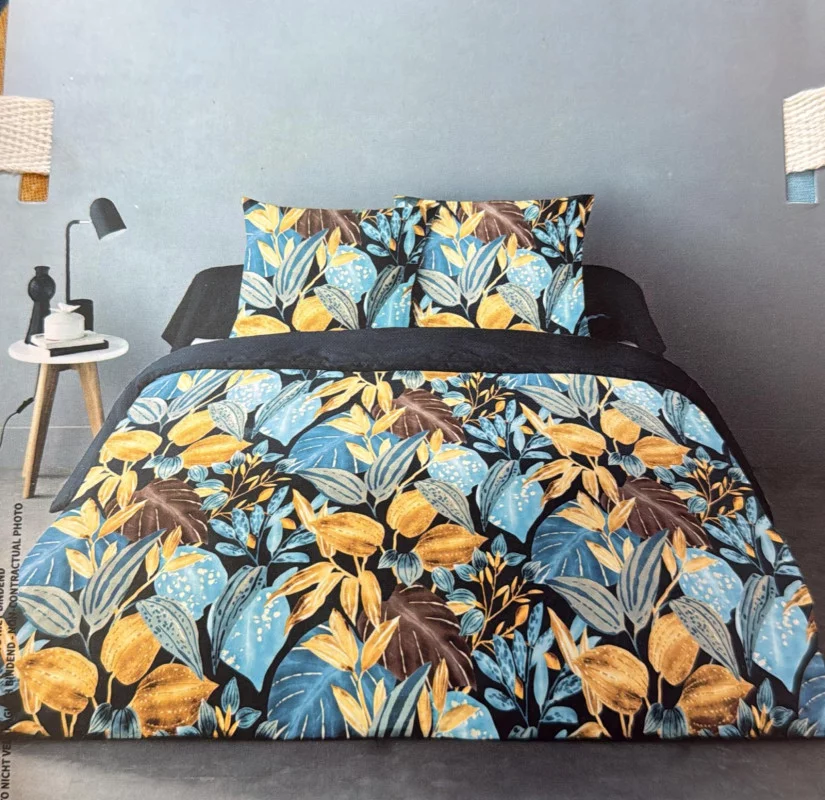 Transformez votre chambre en un véritable sanctuaire d'évasion avec la parure Safaridream. Cette housse de couette de dimensions 240x220cm est accompagnée de deux taies d'oreillers carrées (65x65cm). Son imprimé savane sur fond bleu marine est une merveille visuelle qui réveille immédiatement la décoration de votre pièce. Conçue en 100% coton, elle garantit une douceur exceptionnelle et une respirabilité parfaite pour des nuits paisibles. On adore le contraste des motifs exotiques qui apportent une note bohème et chic à votre intérieur. Proposée à 29 euros, c'est une opportunité fantastique de refaire votre déco sans vous ruiner. Elle se ferme avec des boutons pour un maintien impeccable de la couette. C'est la touche finale pour une chambre de bonheur où l'on a plaisir à se prélasser. Un voyage immobile garanti !