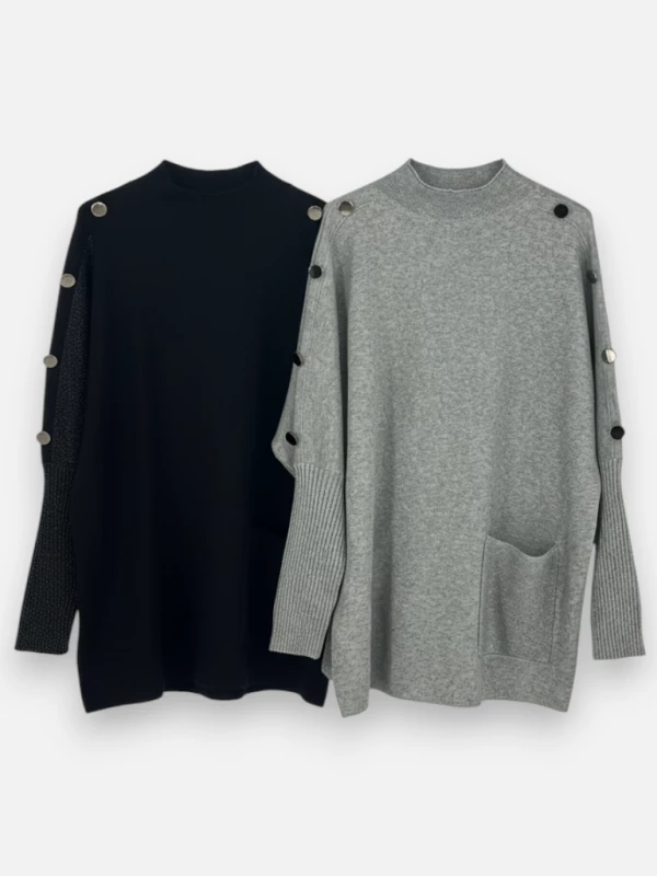 Description : Le petit pull chic avec ses détails pailletés et ses boutons marinière, parfait pour rehausser une tenue avec élégance.