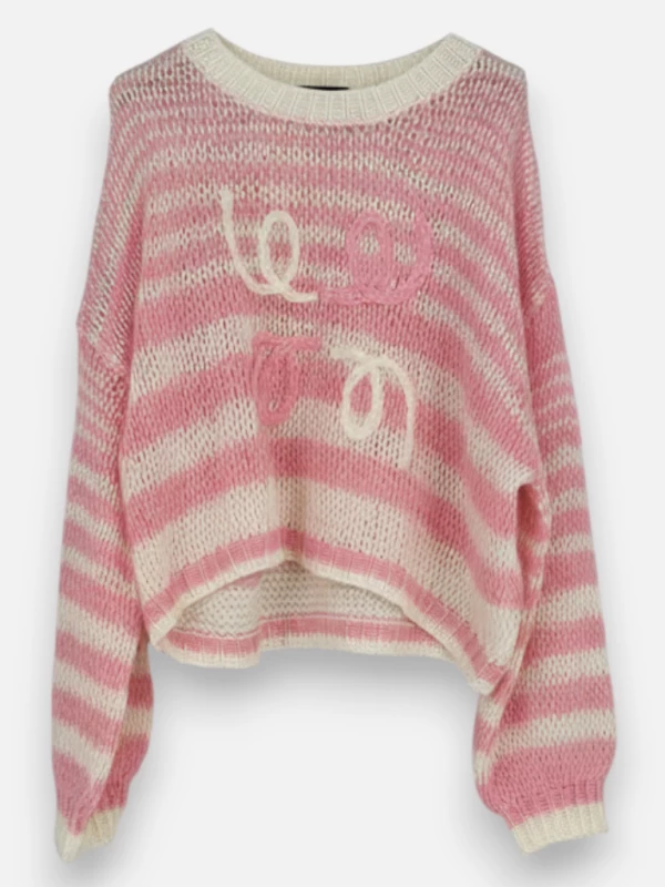 Description : Adorable pull en maille douce à rayures roses, la touche de tendresse et de féminité pour votre look.