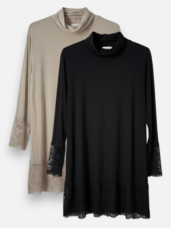 Description : Le dessous de pull col roulé indispensable pour féminiser tous vos looks avec sa touche de dentelle.