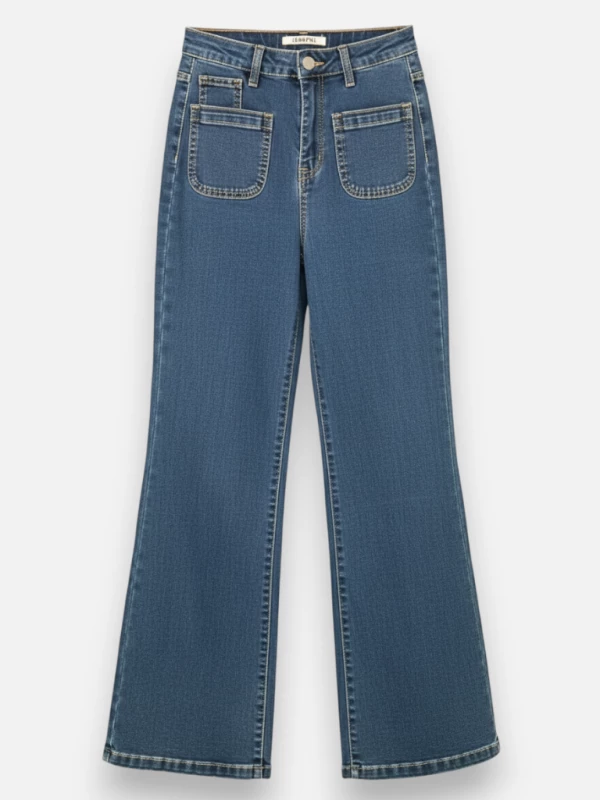 Description : Jean coupe flare, monté sur élastique, style décontracté.