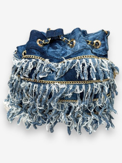 Description : Sac à main avec franges en jean, fermeture à bourse et aimant.