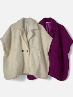 Description : Manteau sans manches effet bouclette, la pièce de créateur pour superposer vos looks avec élégance et originalité.