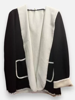Ce gilet type blazer est une pièce polyvalente et élégante. Sa coupe ajustée et ses surpiqûres contrastées lui confèrent un style raffiné et moderne. Il se porte aussi bien ouvert pour une allure décontractée ou fermé pour une silhouette plus structurée. Ses coloris (noir et taupe) lui permettent de s'adapter à tous vos looks.