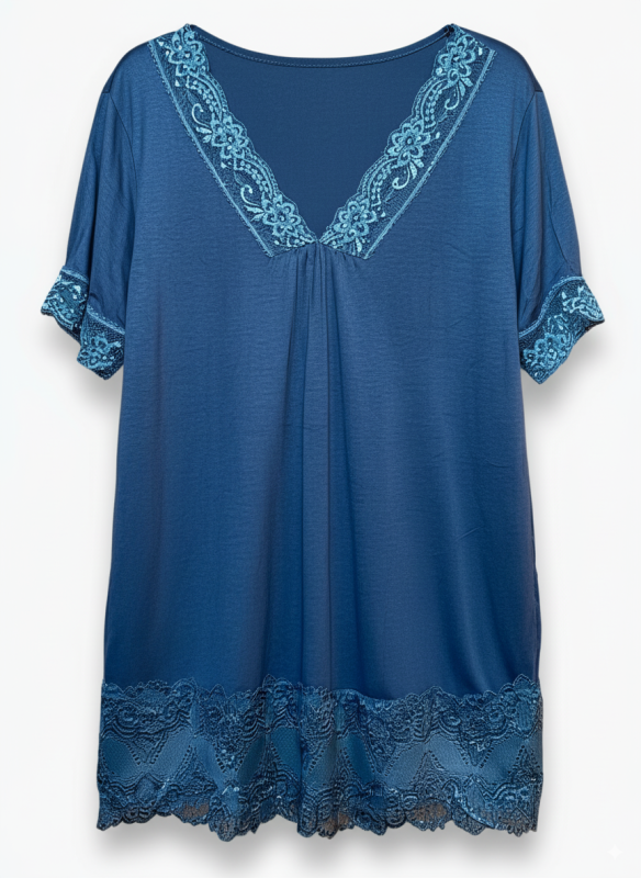 Vous cherchez le haut parfait qui allie confort absolu et féminité ? Le top dentelle Carmina est le basique revisité qu'il vous faut absolument dans votre dressing. C'est une pièce must-have, déclinée dans une multitude de couleurs pour s'adapter à toutes vos envies. Sa matière en viscose est d'une légèreté et d'une douceur incroyables sur la peau, vous offrant une sensation de bien-être tout au long de la journée. Sa coupe, pensée pour les tailles du 36 au 42, est légèrement longue et fluide, idéale pour camoufler les petites rondeurs tout en élégance. Le véritable charme de ce top réside dans sa large bande de dentelle au col et à la base, un détail raffiné qui apporte une touche de séduction.