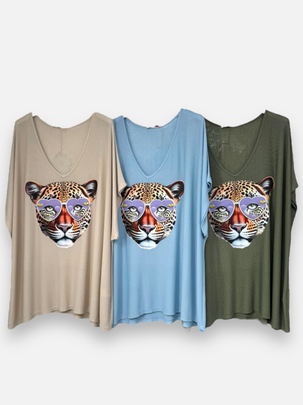 Description : Un t-shirt basique revisité avec son imprimé tigre glamour et ses détails précieux aux yeux en perles.