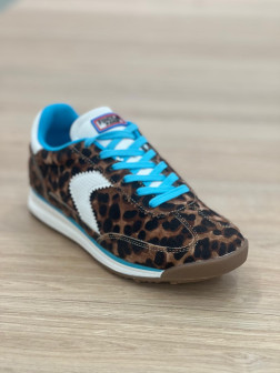Description : Basket Liame léopard et turquoise, la sneaker tendance pour une allure dynamique et originale.