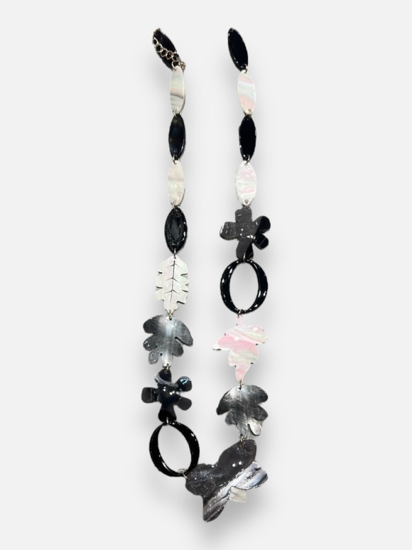 Vous cherchez le bijou capable de transformer une tenue simple en un look sophistiqué ? Le collier Feuillage est cette pièce d'exception. Avec son design inspiré de la nature, il se déploie délicatement sur votre décolleté tel un plastron de feuilles argentées. Sa base de couleur grise, comme le souligne Mona, lui confère une élégance intemporelle et le rend très facile à associer. Il est très, très beau ! Il a ce pouvoir unique d'habiller un col de chemise, de sublimer un pull à col rond ou de rehausser une robe toute simple. Sa structure articulée lui permet de s'adapter parfaitement à votre morphologie, créant un effet spectaculaire sans jamais être trop imposant. C'est une véritable tuerie qui apportera une touche de lumière et de caractère à votre garde-robe.