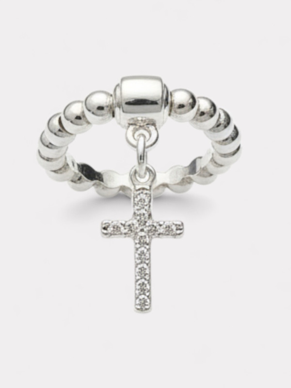 Description : Bague Croix perlée et élastique, l'accessoire de caractère qui s'adapte à tous les doigts.
