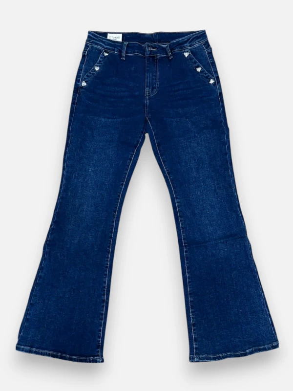 Et si vous pouviez enfin redevenir la meilleure amie de votre jean ? Le jean "Cœur Avec Toi" est une véritable révolution pour les silhouettes généreuses ! Conçu spécialement pour vous, il contient 5% de Lycra, ce qui lui confère une élasticité incroyable dans tous les sens : en hauteur, en largeur... Il épouse vos formes sans jamais les comprimer, vous offrant un confort inégalé tout au long de la journée. Sa coupe, légèrement évasée en bas, est pensée pour affiner et allonger la jambe, créant une silhouette visiblement amincie. Et le détail qui change tout ? Les poches arrière en forme de cœur, pour une touche de fantaisie et de féminité.