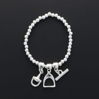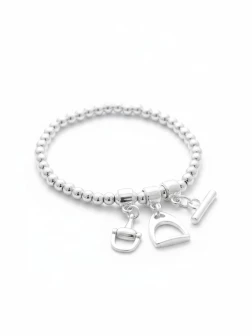 Description : Bracelet raffiné à perles fines et breloques étrier pour une touche d'élégance équestre.