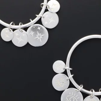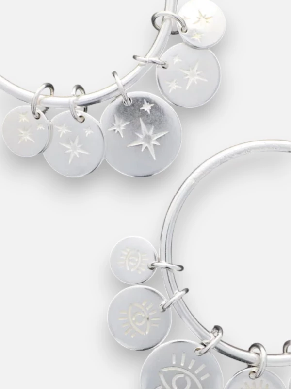 Description : Jonc Scintillant en plaqué argent, un bijou de caractère orné de cinq breloques pour un poignet sublimé.