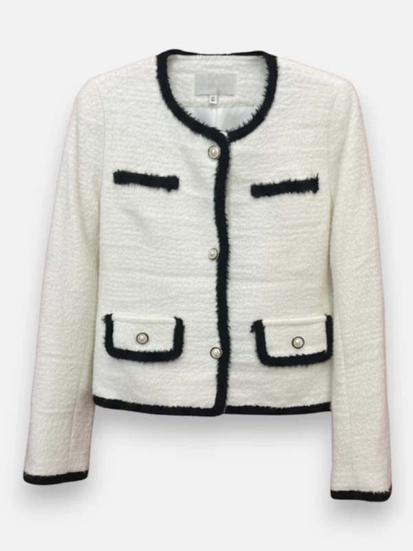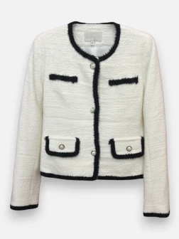 Description : La veste en maille esprit Chanel, la touche d'élégance intemporelle pour un look chic sans effort.