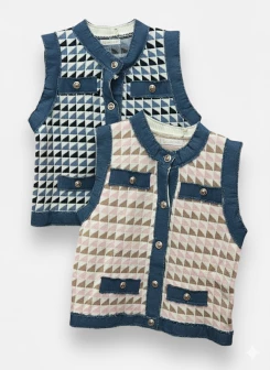 Description : Gilet bi-matière esprit couture, la pièce forte et chic pour rehausser instantanément votre jean préféré et affirmer votre style.