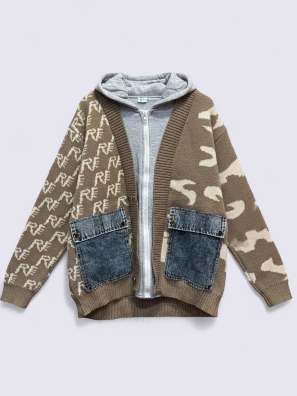 Description : Veste bi-matière façon sweat à capuche et tricot, la pièce 2-en-1 originale et confortable pour un style décontracté et moderne.