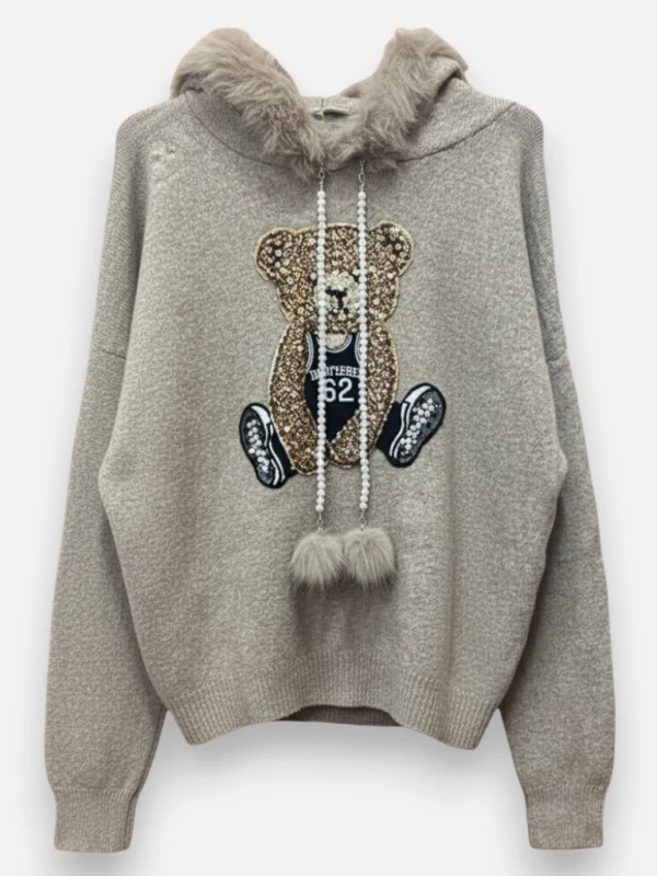 Description : Le pull doudou à l'adorable motif ourson, pour une touche de fantaisie et de chaleur dans votre dressing.