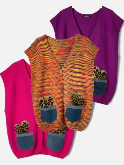 Vous cherchez la pièce parfaite pour finaliser vos looks tout en restant incroyablement à l'aise ? Ne cherchez plus, le gilet Cabana est là ! Spécialement pensé pour nos clientes aux formes généreuses, ce gilet long est une pure merveille de confort et de style. Sa maille fine et légère est un plaisir à porter, et ses couleurs vibrantes, que ce soit en fuchsia, en violet ou en version multicolore, apporteront une touche de gaieté à n'importe quelle tenue. On adore sa longueur idéale qui cache les fesses et allonge la silhouette. Il vous suivra partout, que ce soit pour une journée au bureau ou une sortie décontractée. C'est la pièce de superposition par excellence, celle qui transforme un look simple en une tenue pensée et stylée.
