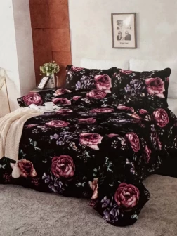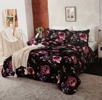 Description : Boutis réversible au motif floral noir et blanc pour un look chic et contemporain.