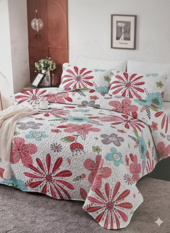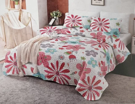 Description : Un boutis réversible aux motifs fleuris pour une chambre fraîche et colorée.