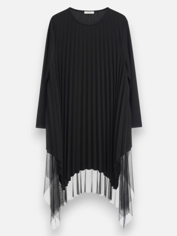 Description : La tunique plissée esprit créateur, une pièce forte et facile à vivre pour un look architectural et moderne.