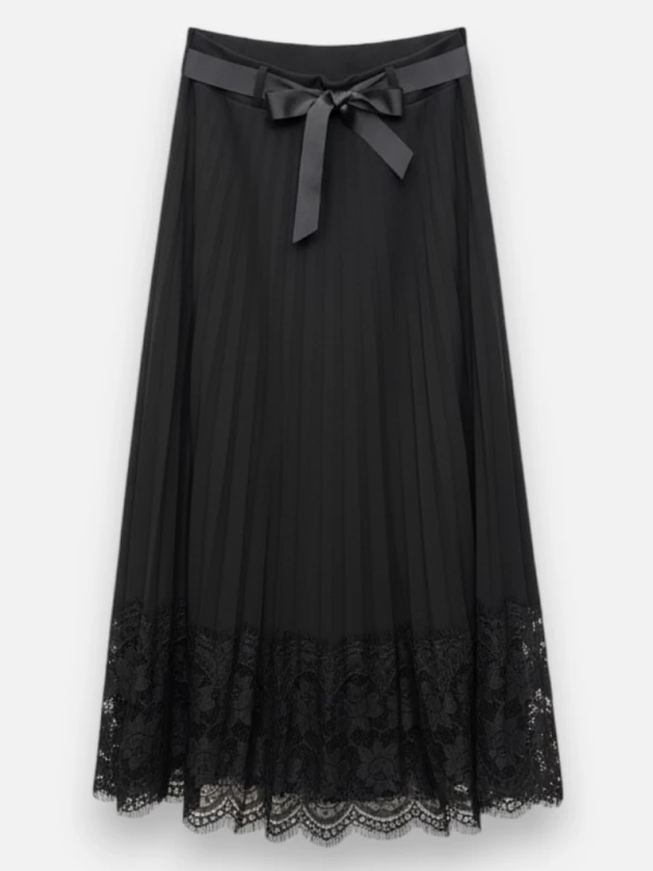 Description : Jupe longue fluide terminée par une large bande de dentelle pour un style bohème-chic.