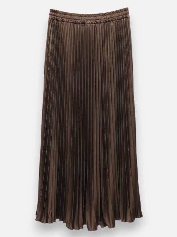 Description : Jupe longue plissée en satin, l'essentiel pour un look élégant et facile à porter.
