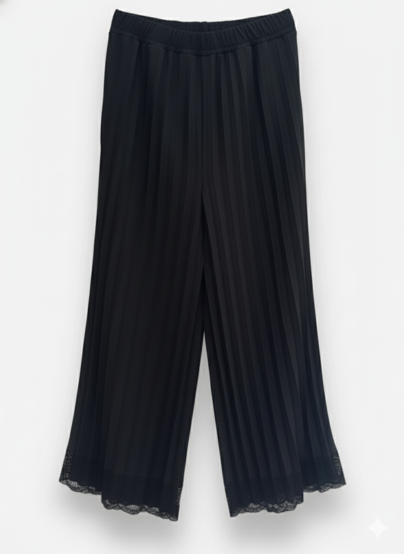 Description : Pantalon large plissé, l'élégance d'une jupe avec le confort d'un pantalon.