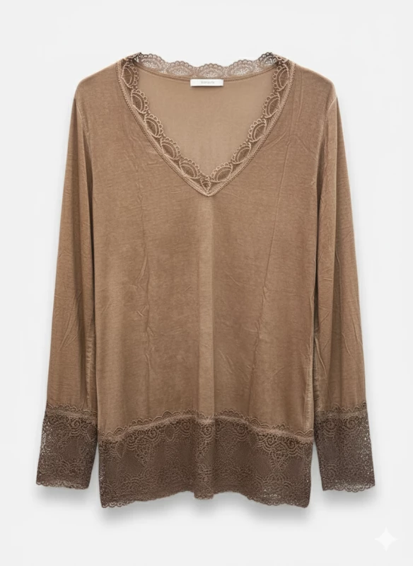 Description : Le sous-pull en dentelle col V, l'indispensable pour féminiser vos pulls et vestes avec raffinement.