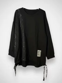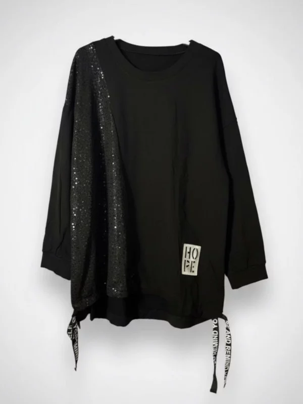 Description : Sweat noir tendance avec son empiècement à sequins, l'allié parfait pour un look sport-chic.