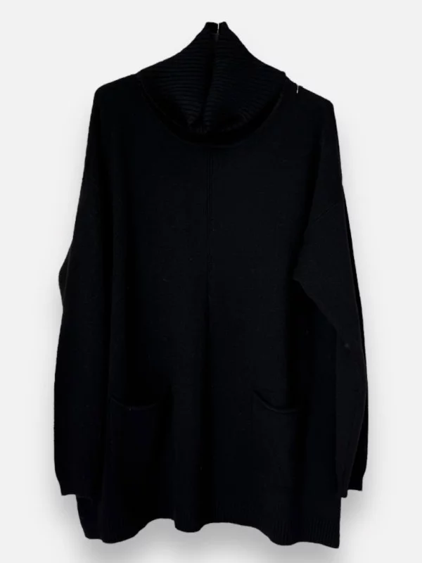 Description : Le pull noir chic et pratique avec son col boule et ses poches, un essentiel confortable pour tous les jours.
