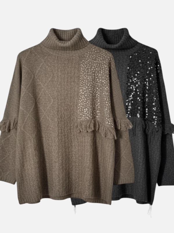 Description : Pull Matisse long et élégant, rehaussé de sequins et de franges pour une touche bohème-chic.