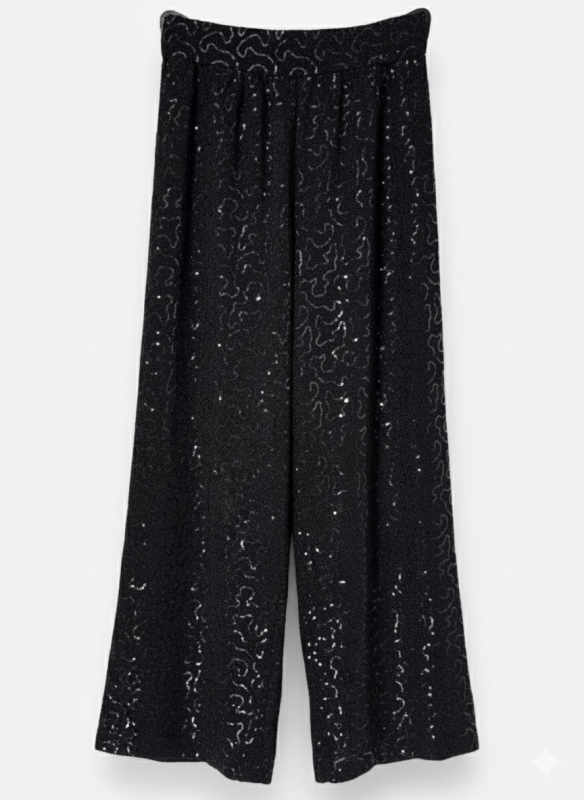 Description : Le pantalon pailleté confortable et facile à porter, pour briller en soirée sans sacrifier votre bien-être.