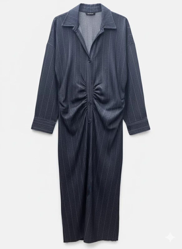 Description : Adoptez l'élégance business-chic avec notre robe chemise Alex à rayures tennis, une pièce maîtresse pour un look affirmé.
