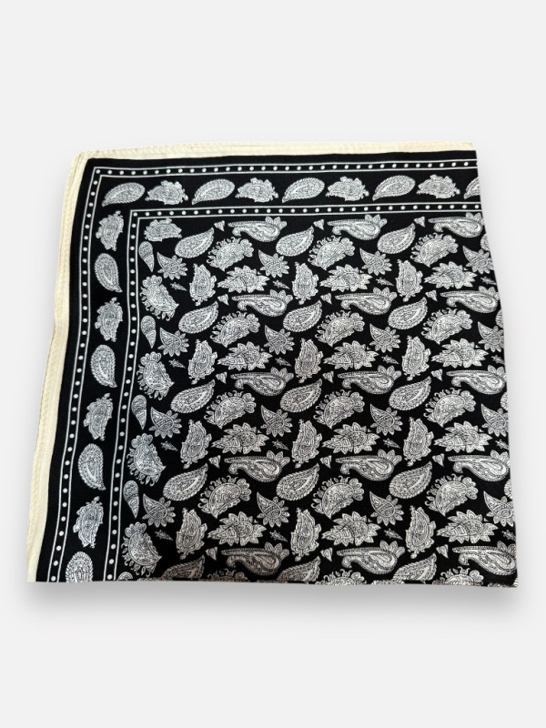 Description : Carré 100% soie à l'imprimé bandana rose, l'accessoire féminin et tendance par excellence.