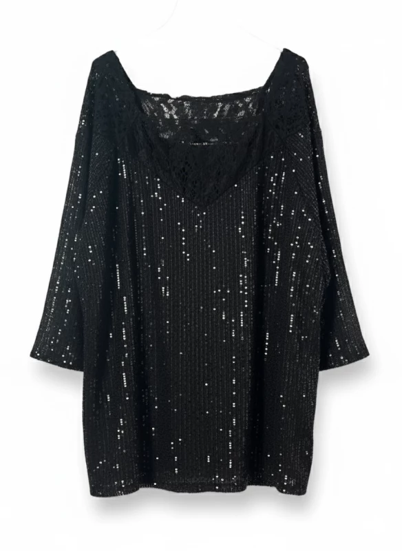 Description : Top Malice à sequins, la pièce festive et confortable pour briller de mille feux en toute occasion.