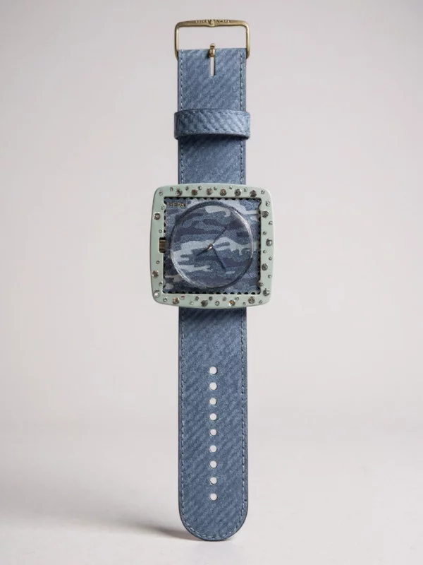 Description : Montre originale style camouflage jean, rehaussée de strass pour une touche rock et glamour.