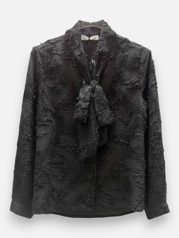 Description : La chemise fluide et élégante avec son col jabot en dentelle pour une touche de raffinement immédiate.