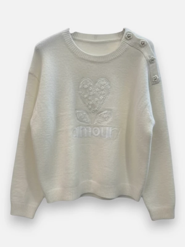 Description : Un pull romantique et doux, orné de détails brodés pour une touche d'amour au quotidien.