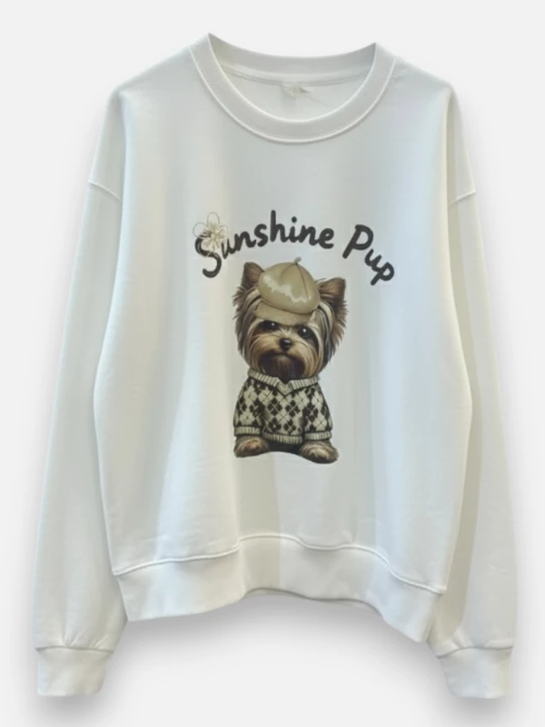Description : Adoptez un look original et attendrissant avec ce sweat à l'effigie d'un adorable chien à casquette.