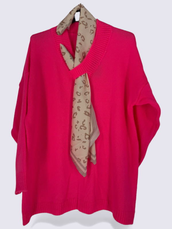 Vous aimez les pièces astucieuses qui vous permettent de changer de style sans effort ? Le pull Chic'Foulard est un véritable bijou d'ingéniosité et d'élégance ! Ce pull à la maille douce et confortable possède un col V sur lequel sont discrètement intégrés trois petits passants. Vous pouvez y glisser le magnifique foulard à l'imprimé léopard fourni avec, pour un effet cravate ou lavallière ultra chic. Et le meilleur ? Le foulard est complètement indépendant ! Vous pouvez donc le retirer et le remplacer par n'importe quel autre foulard de votre collection pour l'assortir à votre humeur ou à votre tenue. C'est le pull parfait pour passer d'un look sobre à une allure sophistiquée en un instant.